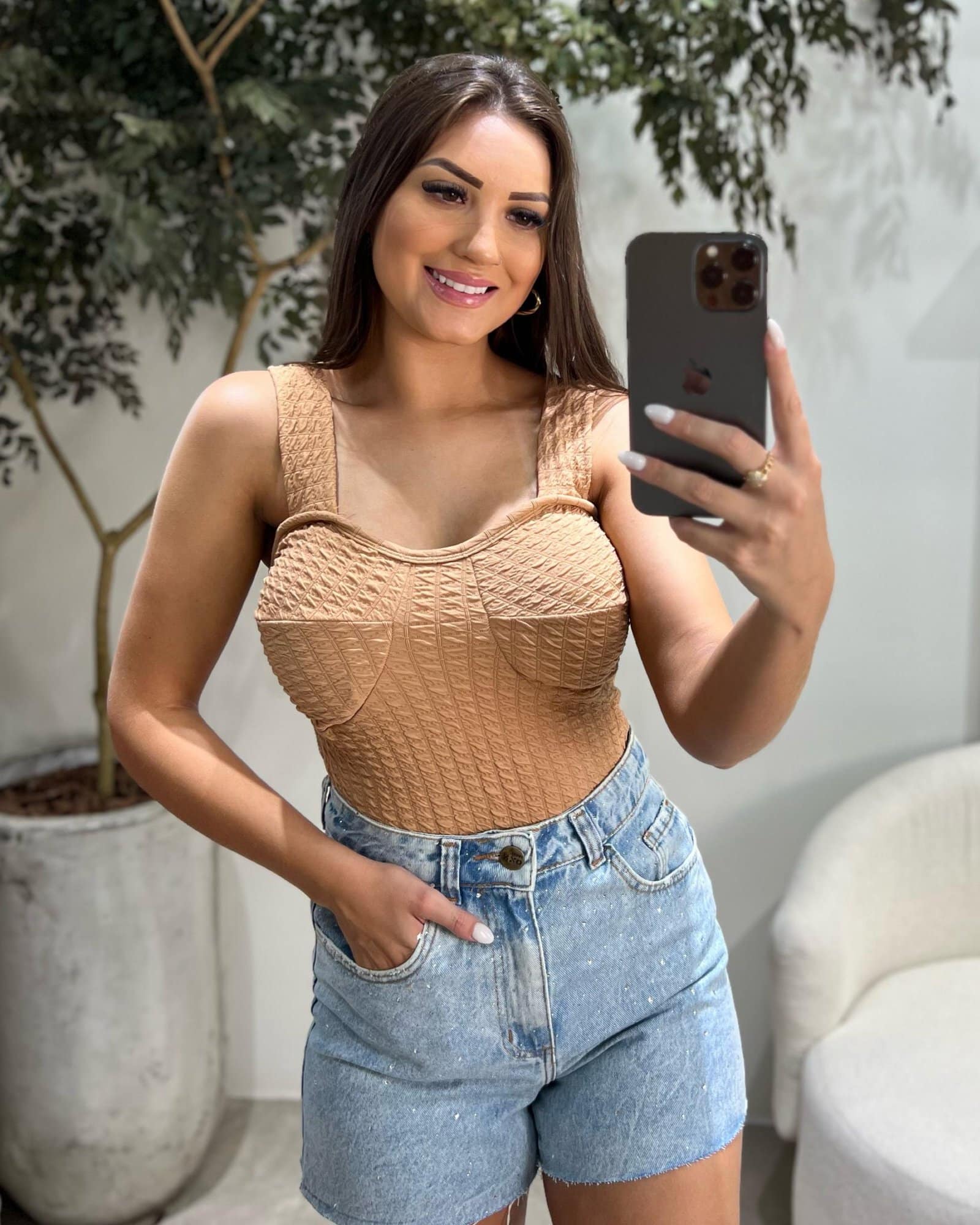 70 cm de busto, 64 cm de cintura e 67 cm de comprimento.
