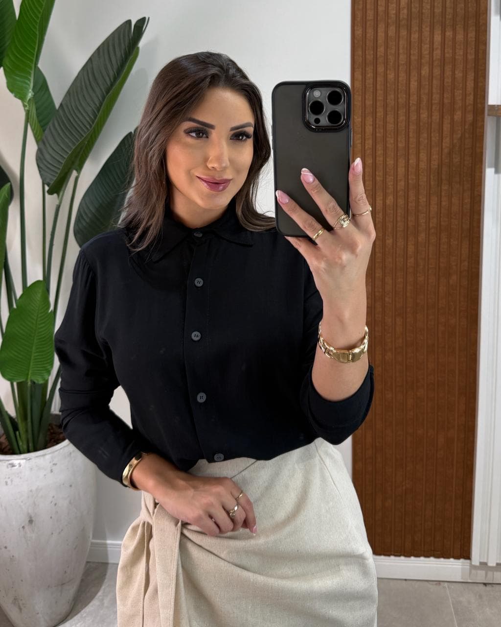 M – 98 cm de busto, 92 de cintura, 53 cm de manga e 59 cm de comprimento.