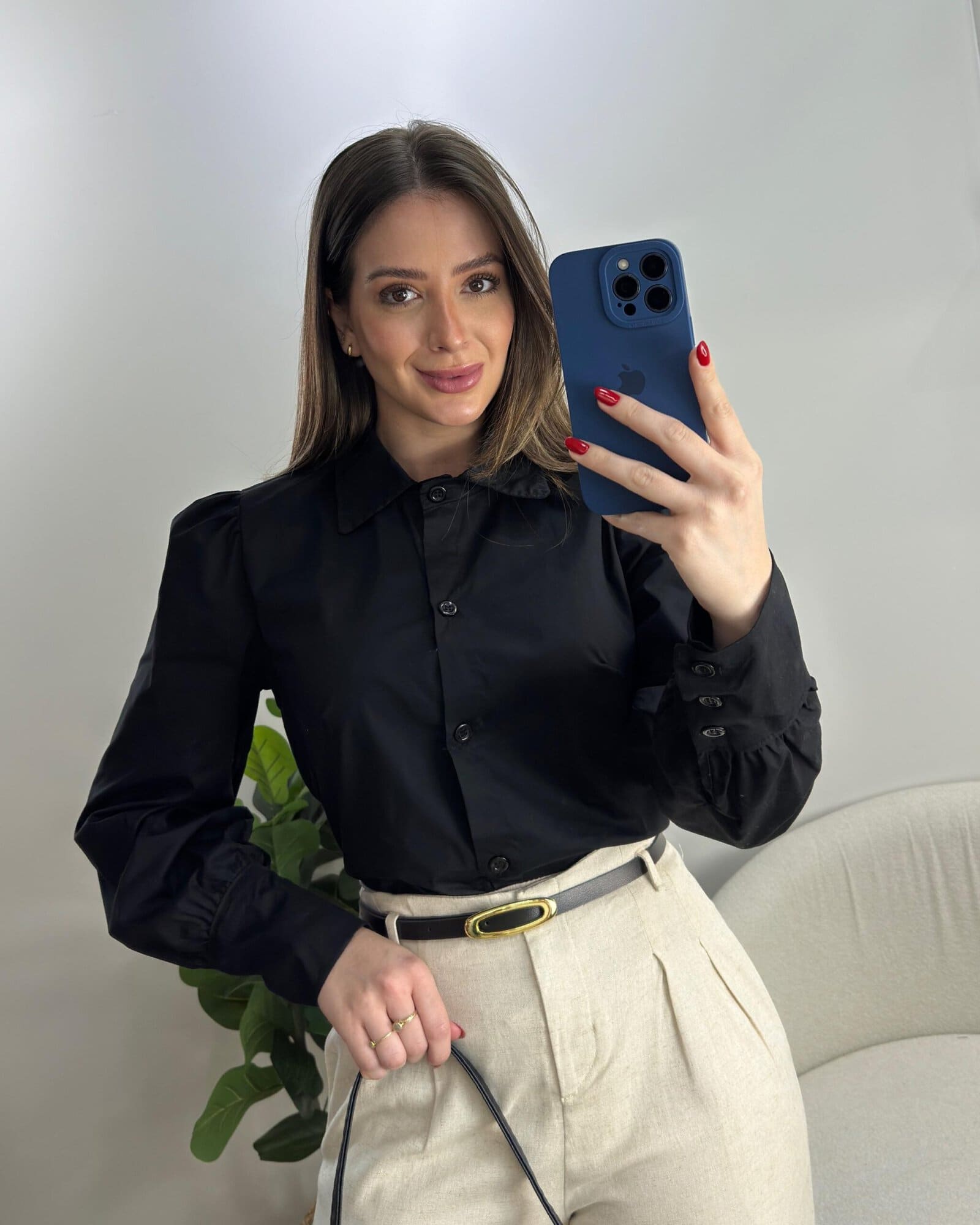 M – 98 cm de busto, 92 de cintura, 53 cm de manga e 59 cm de comprimento.