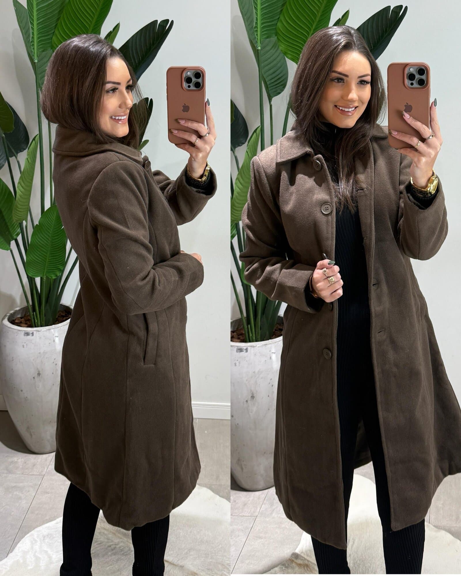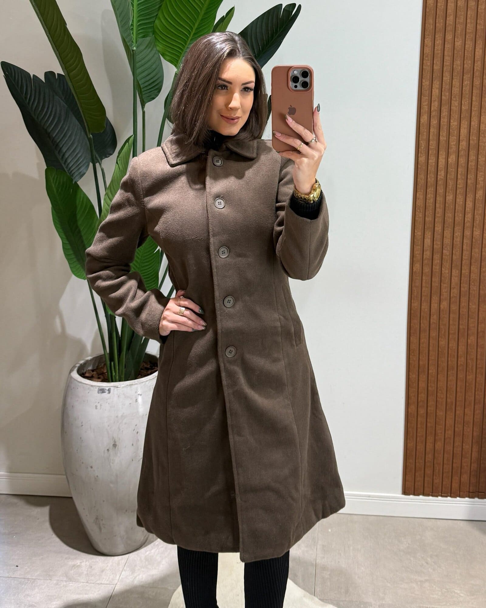 P – 70 cm de busto, 86 cm de cintura, 57 cm de manga e 100 cm de comprimento.