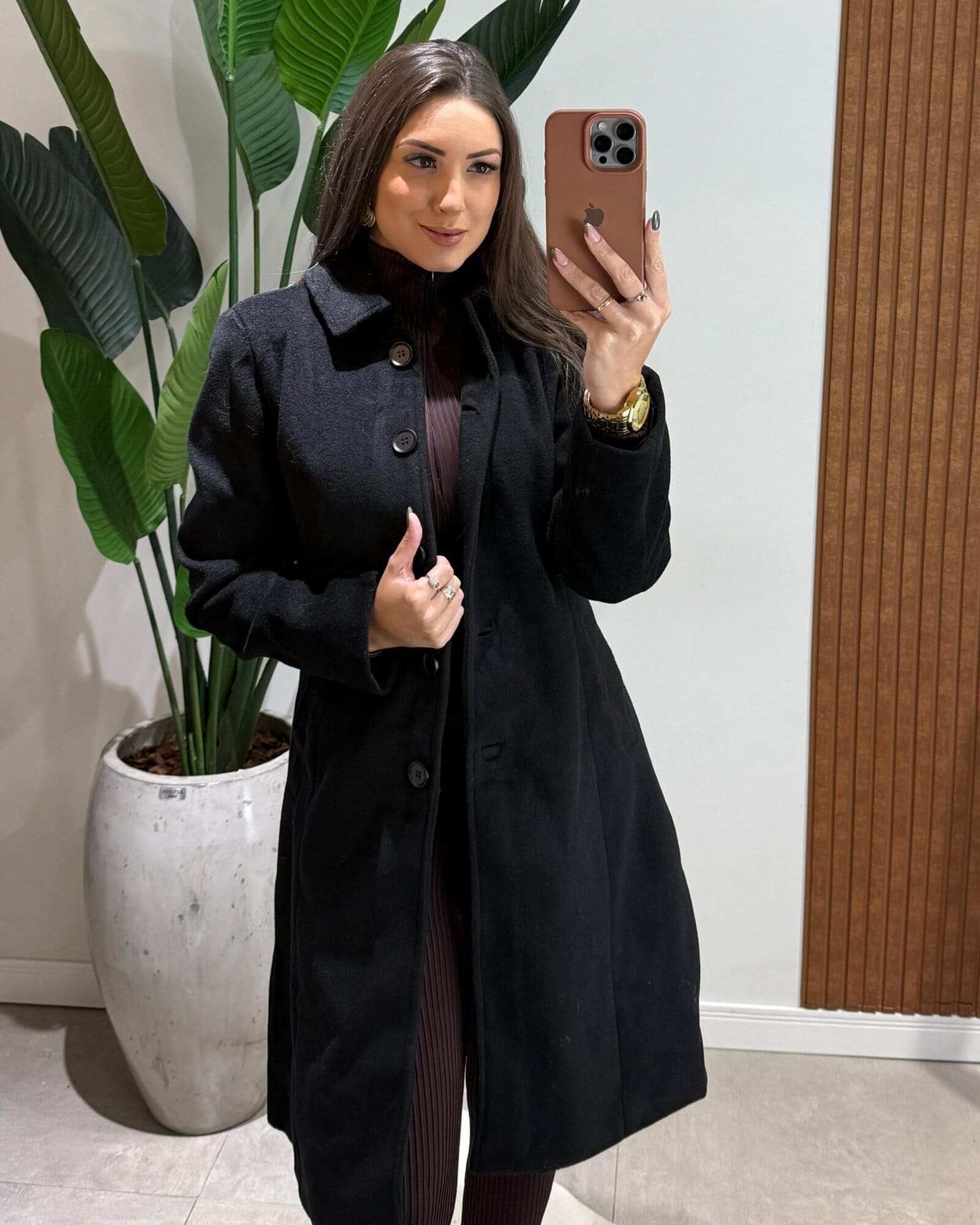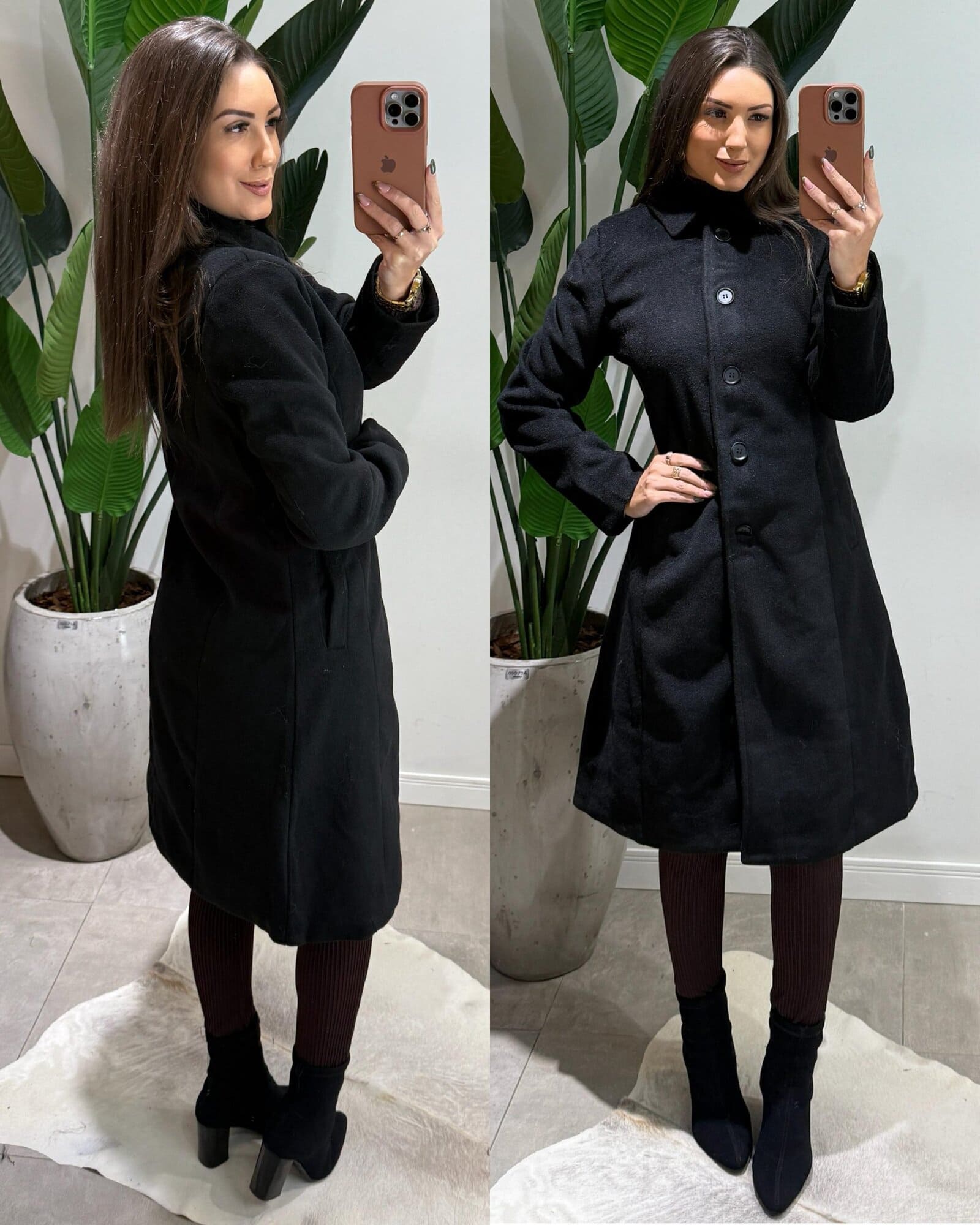 Casaco Parka Lã Batida Lua Preto