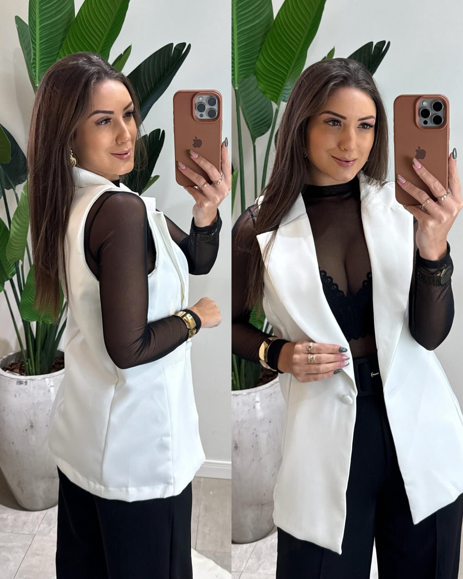 P – 72 cm de busto, 86 cm de cintura e 71 cm de comprimento.
