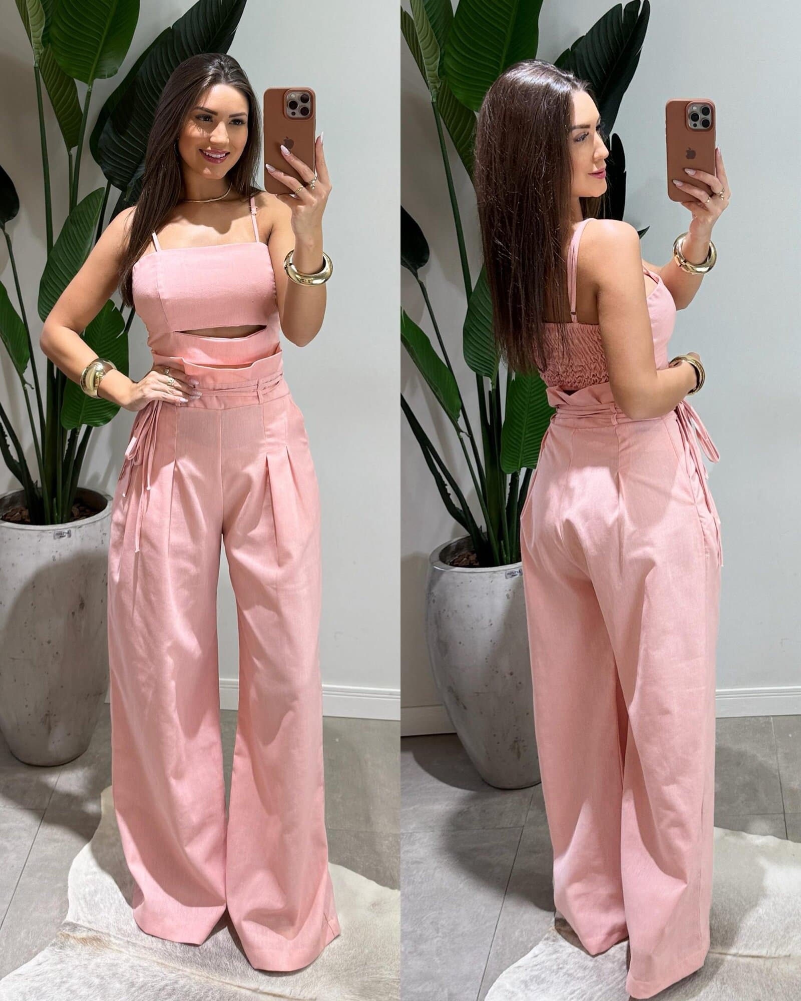 Calça: 74 cm de cintura, 114 cm de quadril e 117 cm de comprimento.