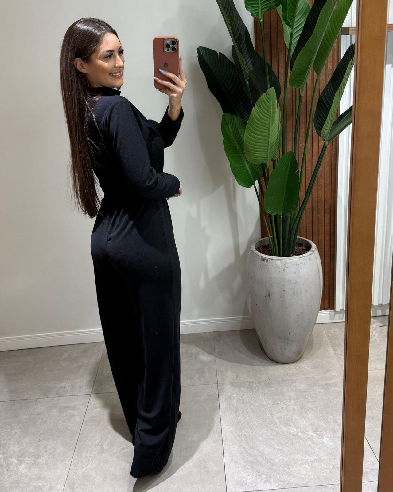 Calça – 68 cm de cintura, 94 cm de quadril e 102 cm de comprimento.