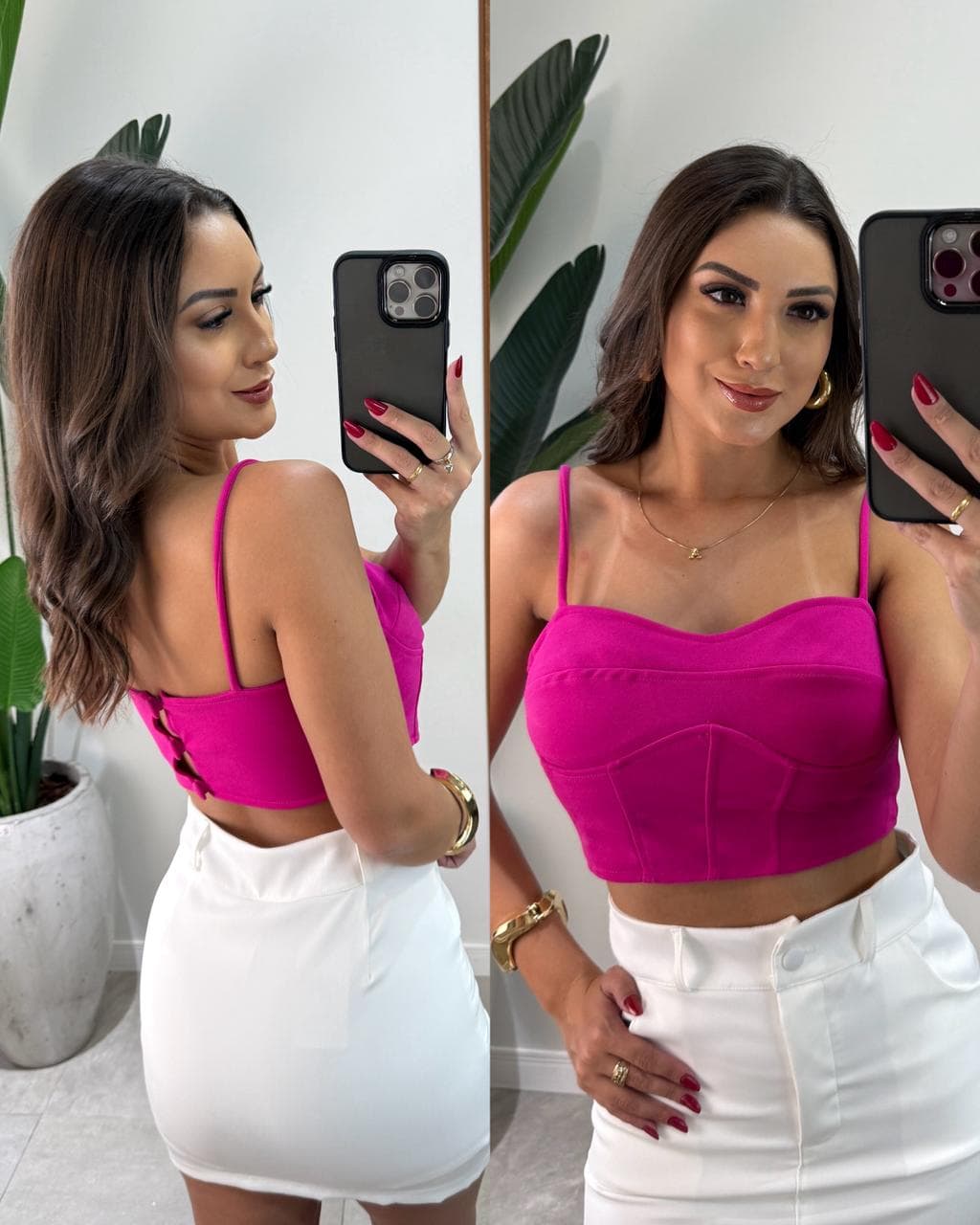Cropped Curto Botão Glória Pink