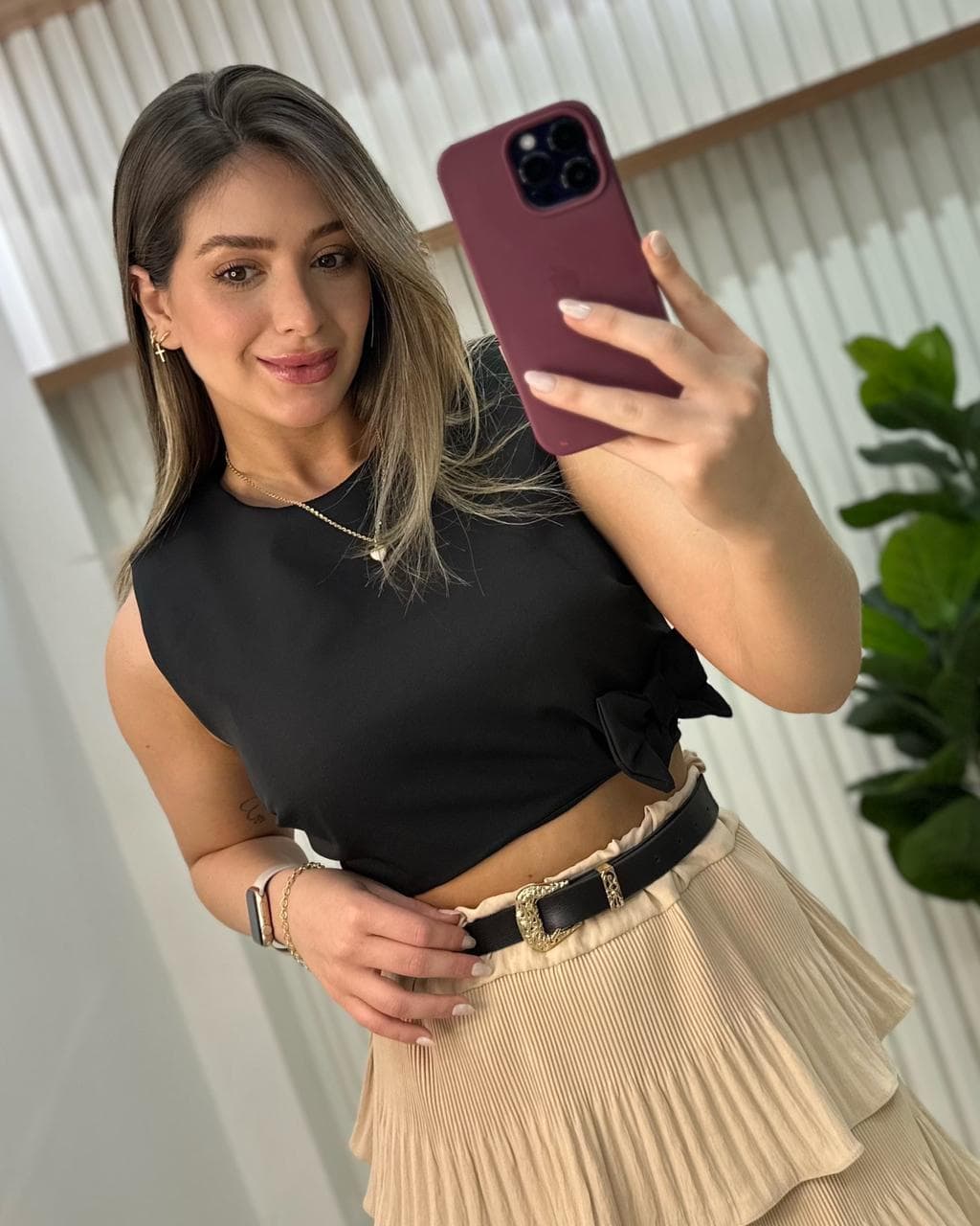 M – 88 cm de busto, 70 cm de cintura e 36 cm de comprimento.