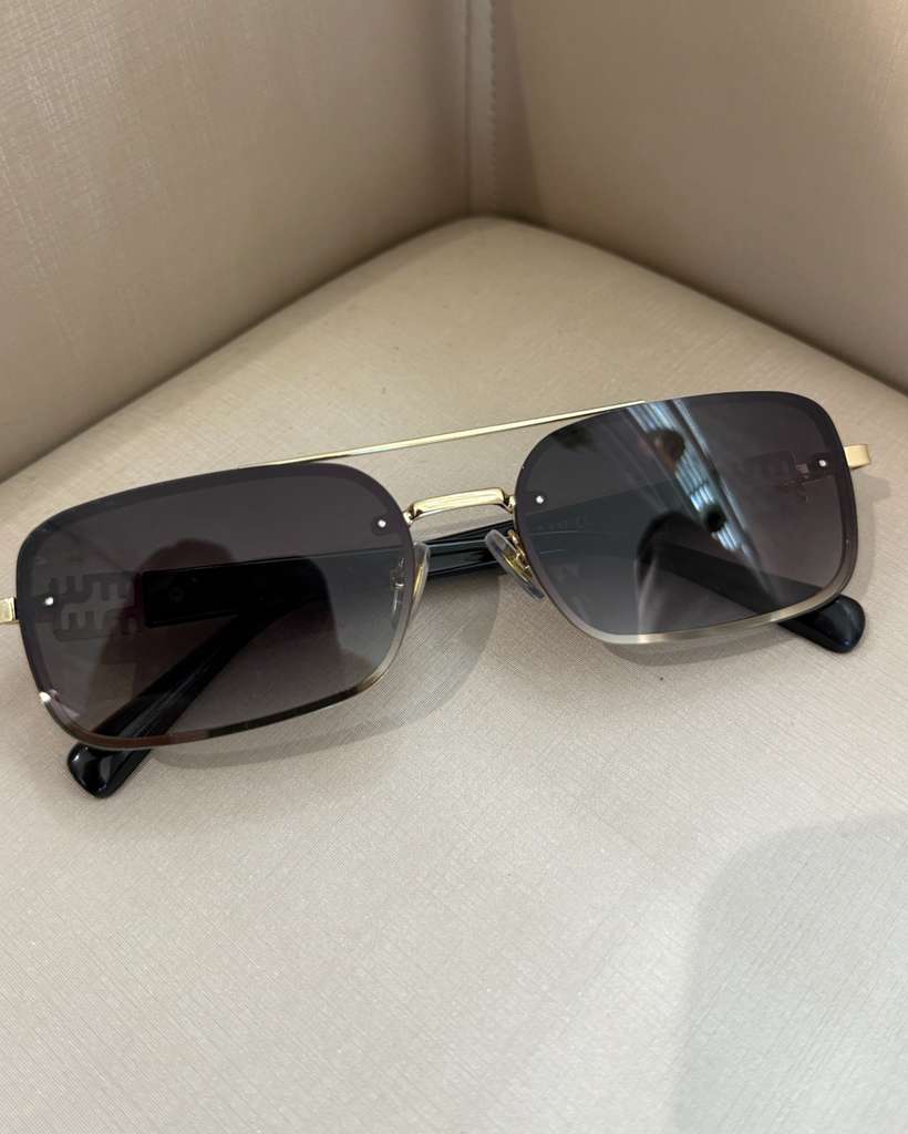 O formato retangular garante um toque de atitude, enquanto o brilho sutil do dourado traz aquele charme clássico que nunca sai de moda. 💜🕶️