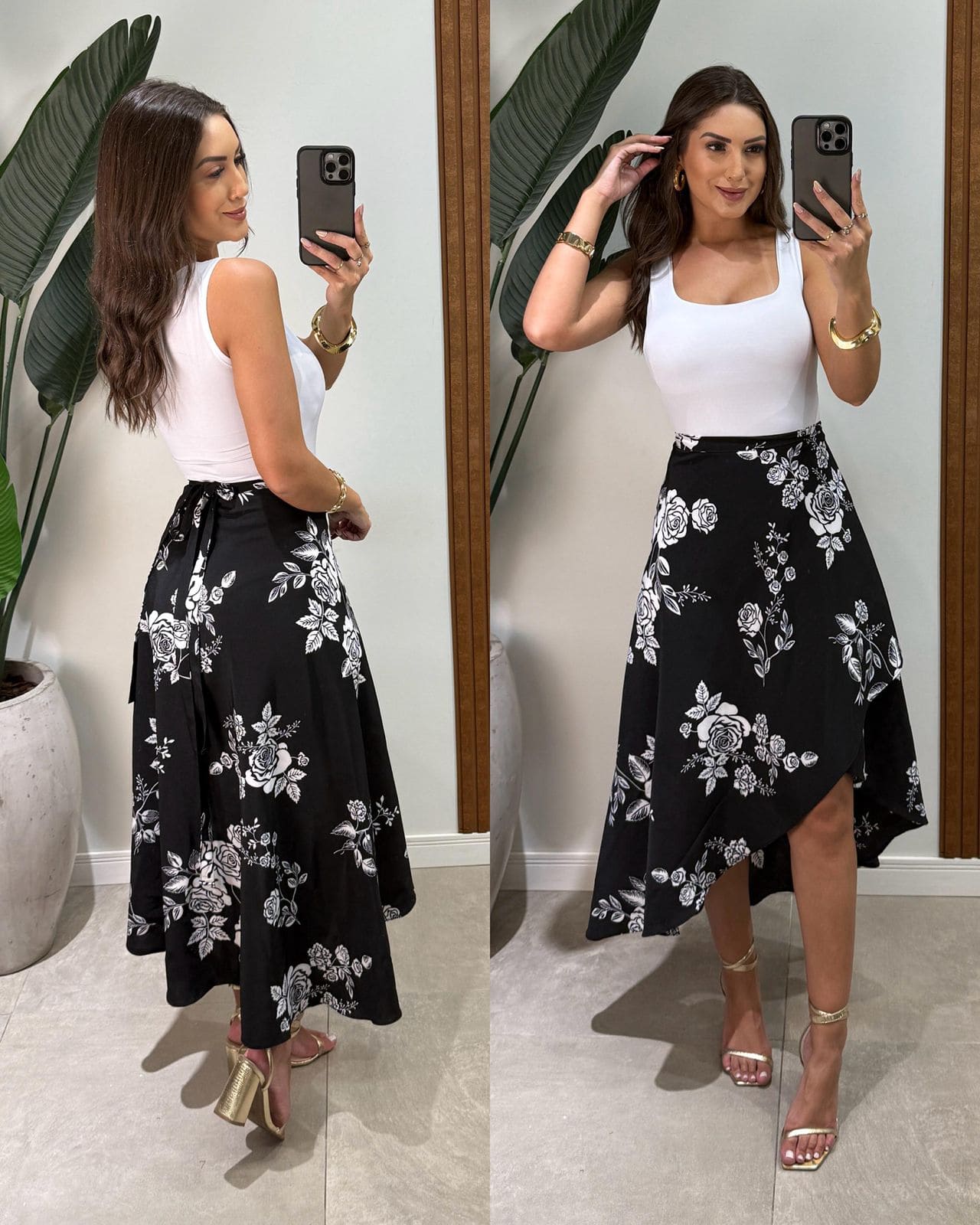 80 cm de cintura, 104 cm de quadril e 97 cm de comprimento.