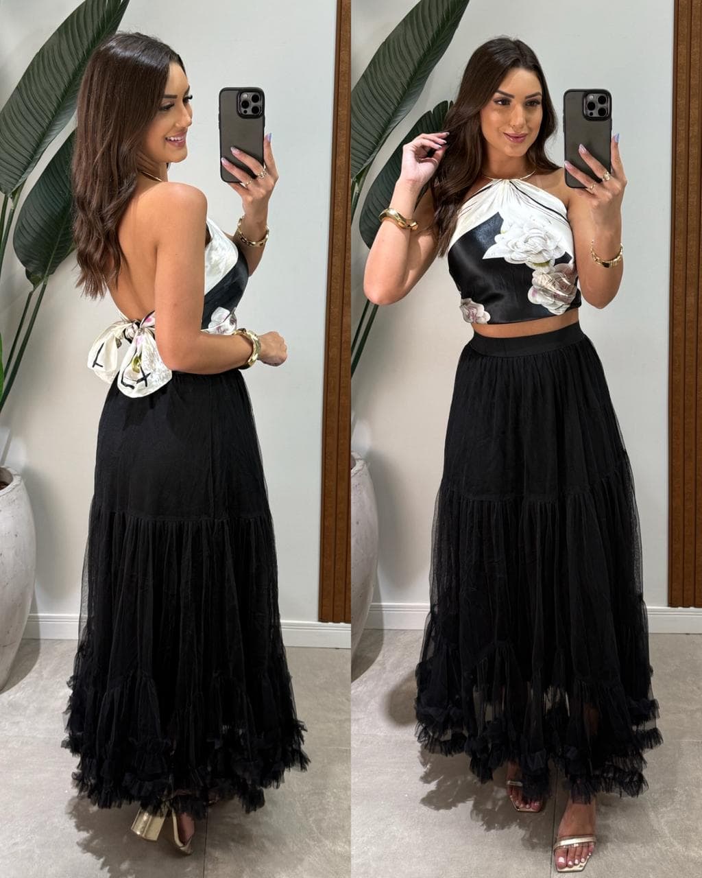 66 cm de cintura, 84 cm de quadril e 91 cm de comprimento.
