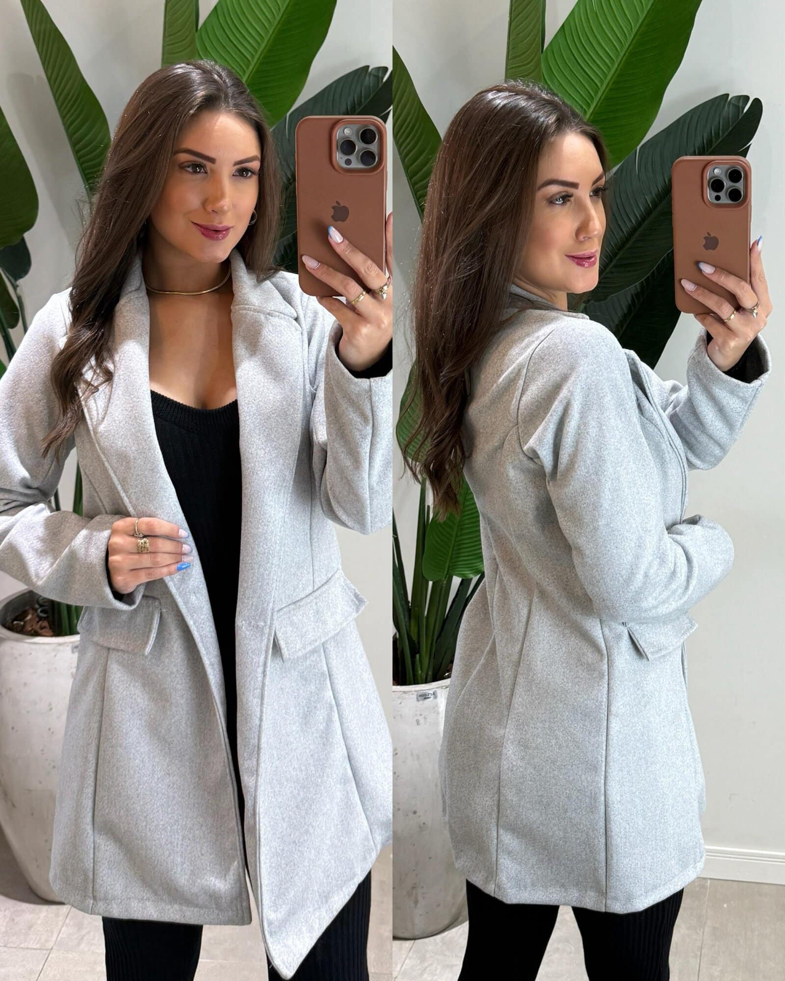 Sobretudo Lã Batida Lavinia Cinza Claro