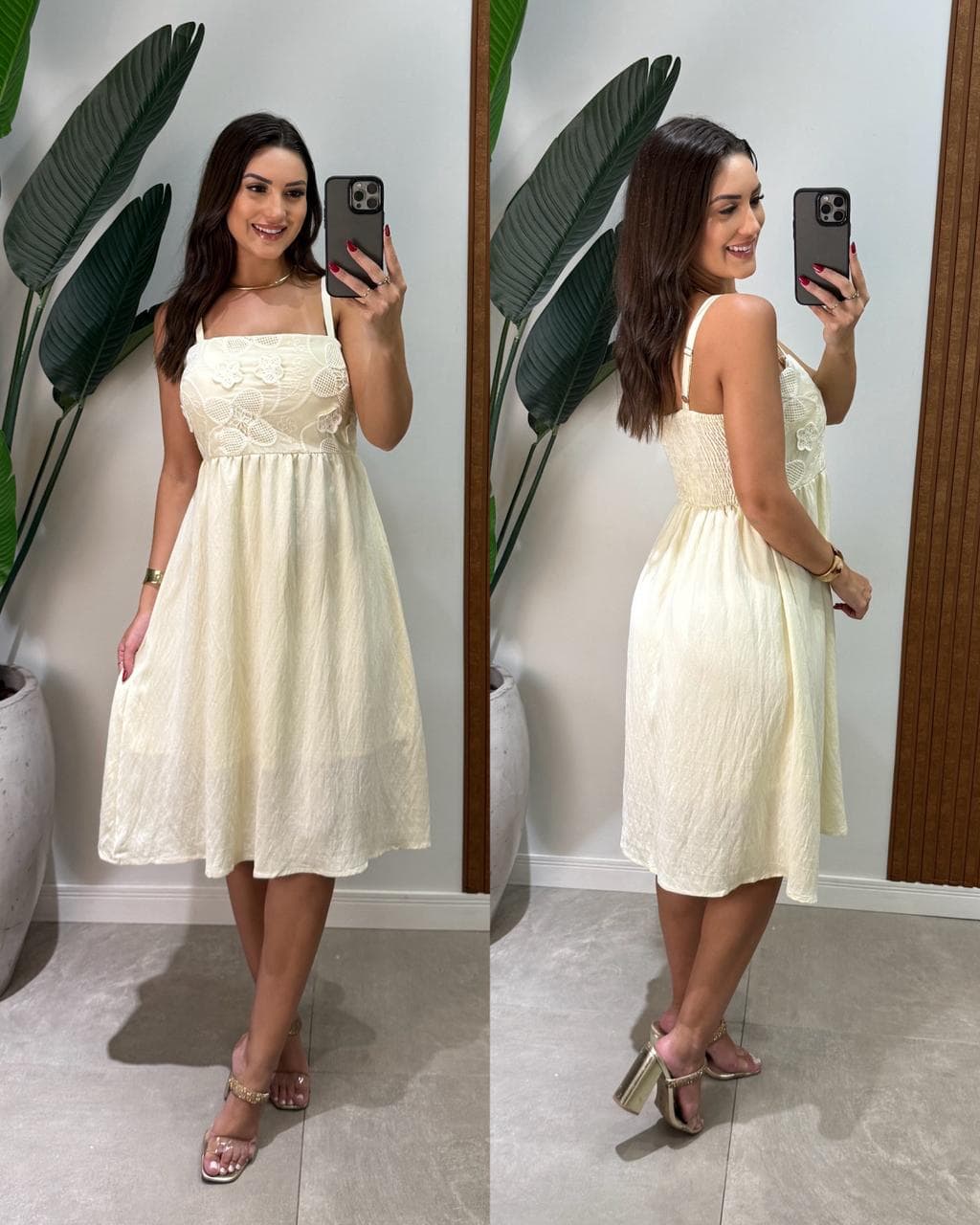 M – 60 cm de busto, 66 cm de cintura, 78 cm de quadril e 82 cm de comprimento.