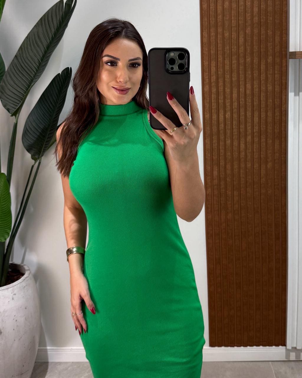 Vestido Canelado Lucia Verde Bandeira