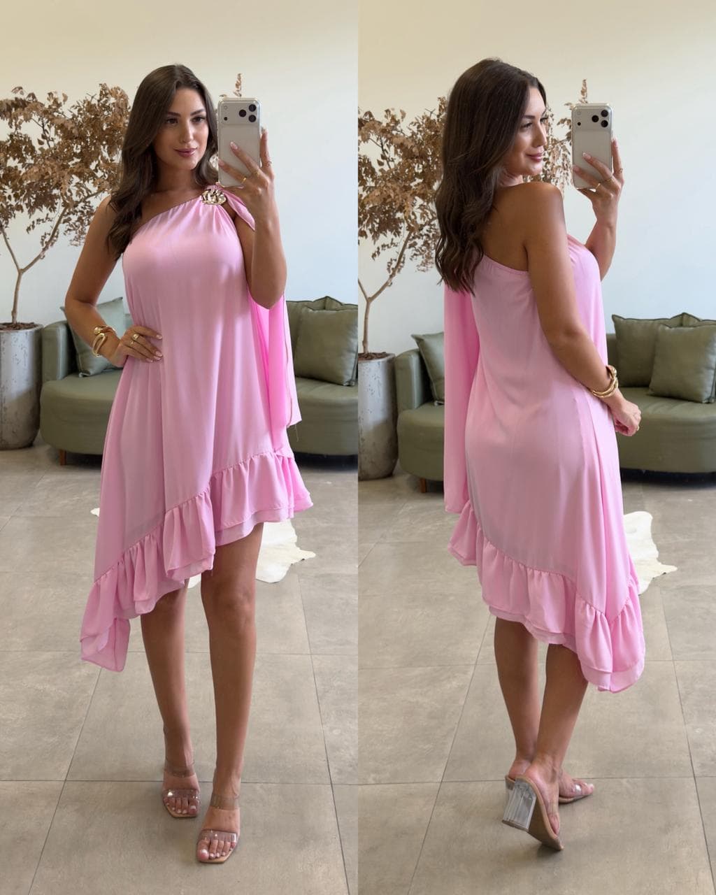 66 cm de busto, 86 cm de cintura, 104 cm de quadril e 82 cm de comprimento.