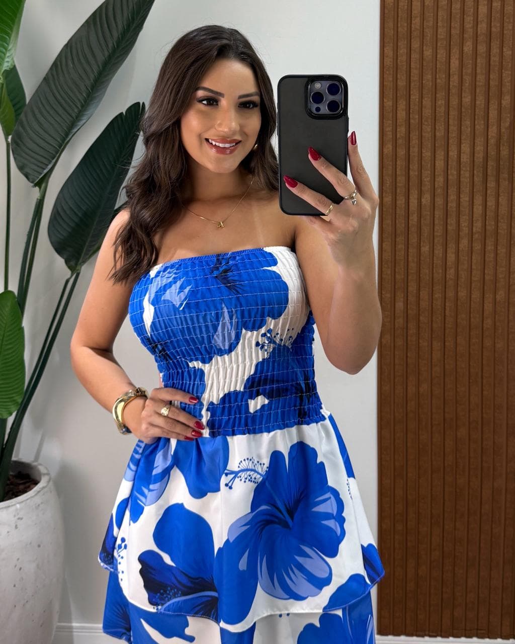 40 cm de busto, 46 cm de cintura, 54 cm de quadril e 71 cm de comprimento
