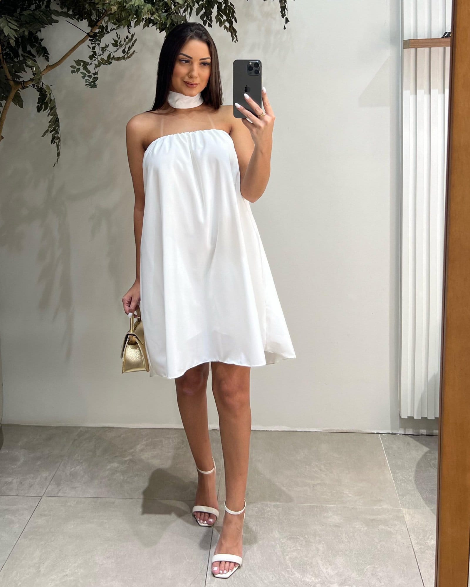 Vestido Curto Crepinho Isis Branco