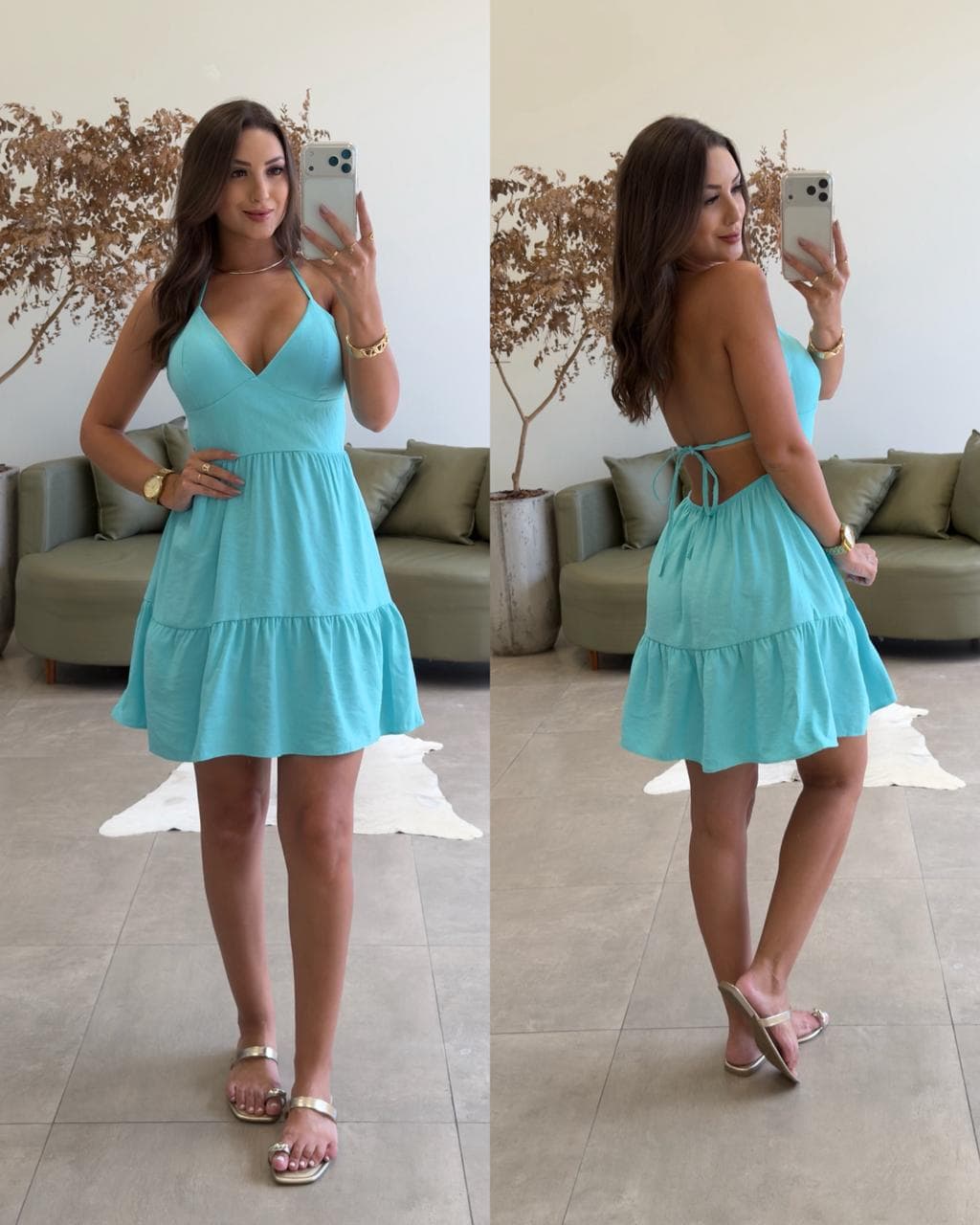 62 cm de busto, 72 cm de cintura, 88 cm de quadril e 73 cm de comprimento.