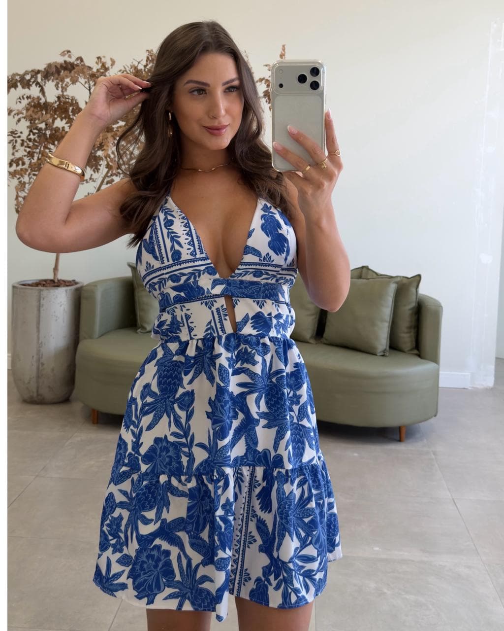 66 cm de busto, 74 cm de cintura, 80 cm de quadril e 71 cm de comprimento.