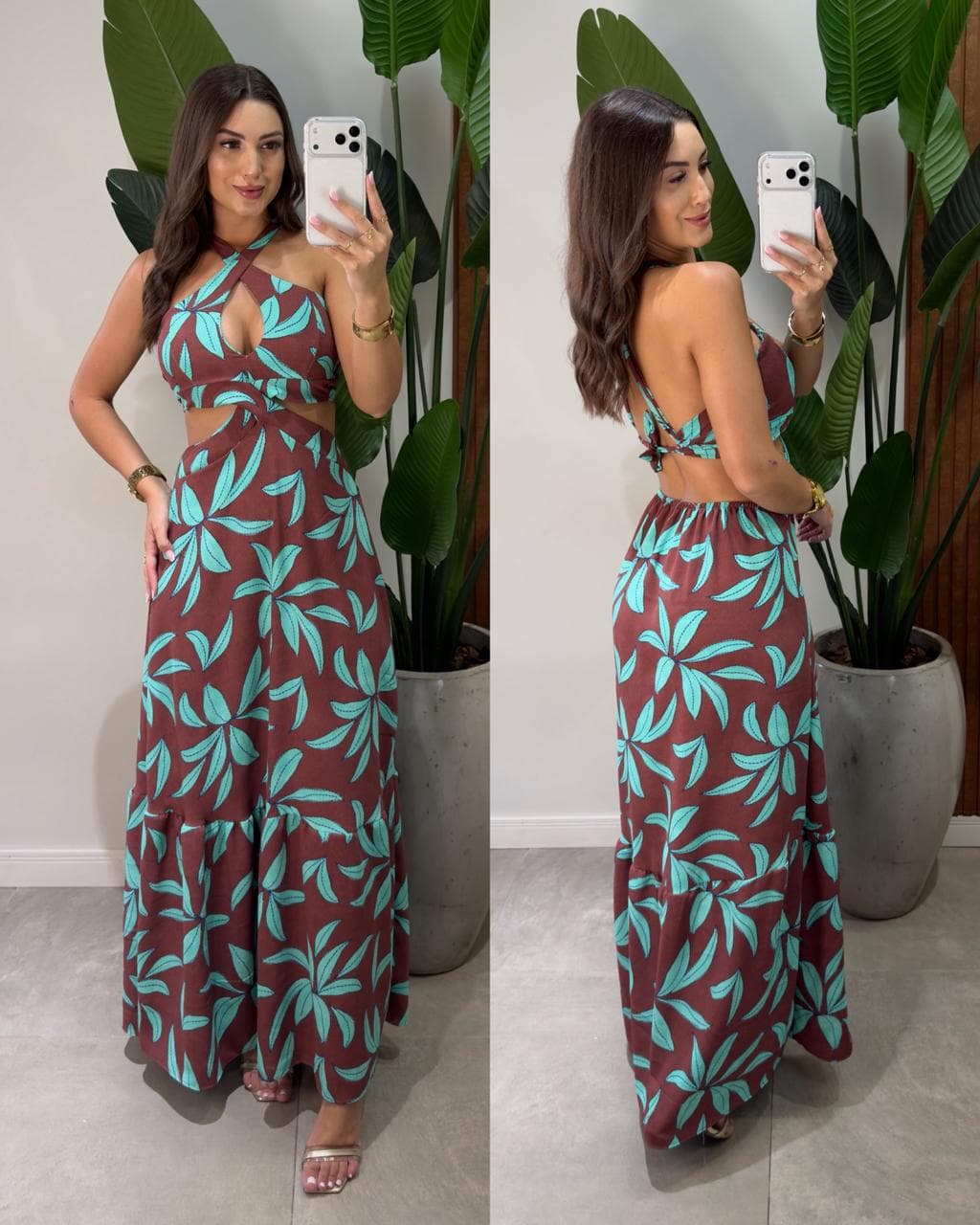 Alças cruzadas na frente, formando um detalhe diferenciado no busto