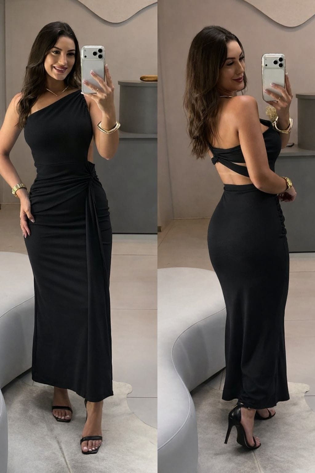 52 cm de busto, 60 cm de cintura, 66 cm de quadril e 126 cm de comprimento.