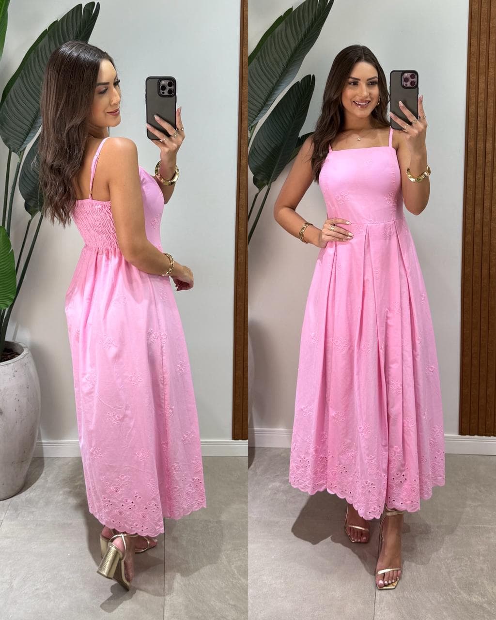 68 cm de busto, 70 cm de cintura, 90 cm de quadril e 112 cm de comprimento.