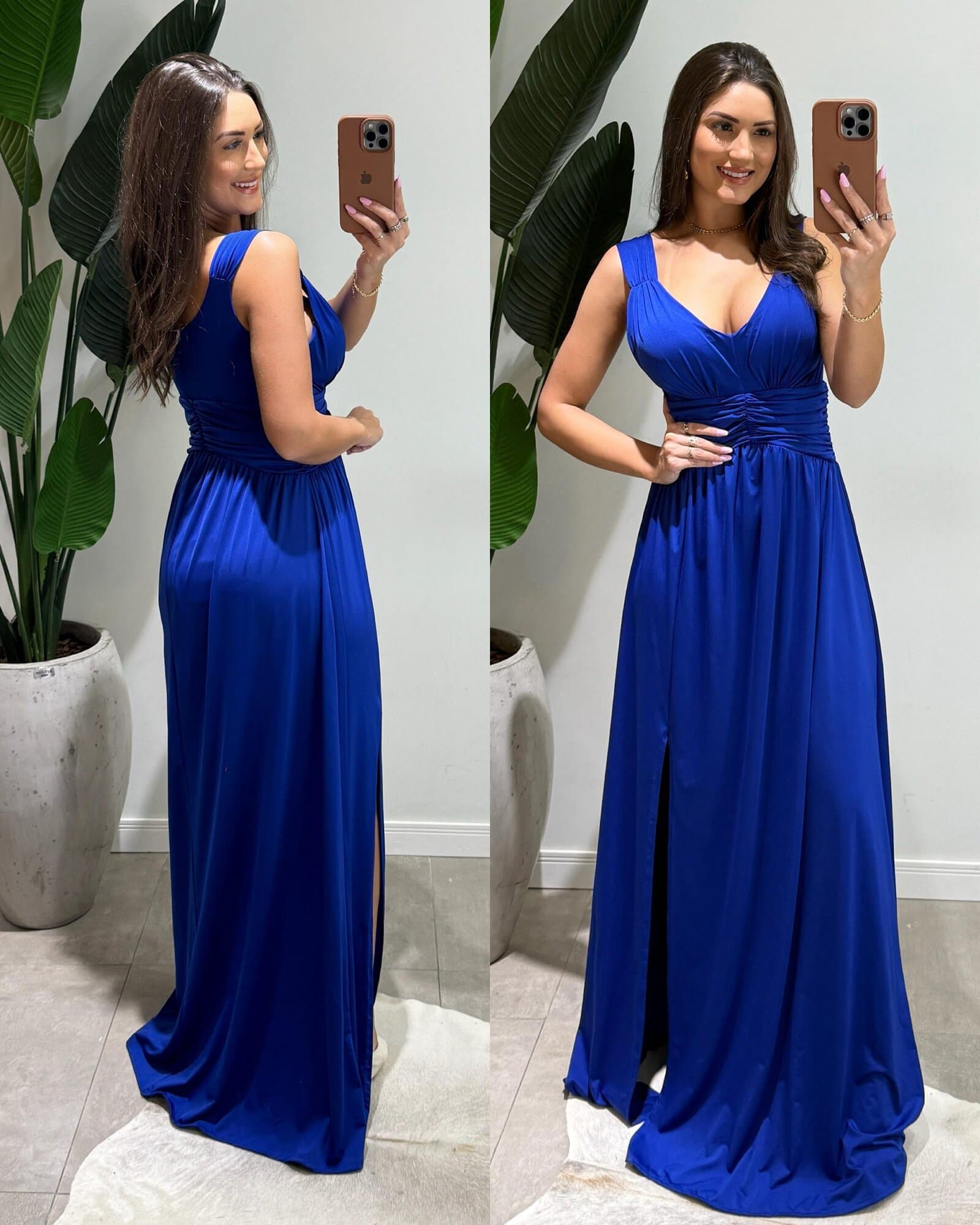 66 cm de busto, 62 cm de cintura, 76 cm de quadril e 149 cm de comprimento.