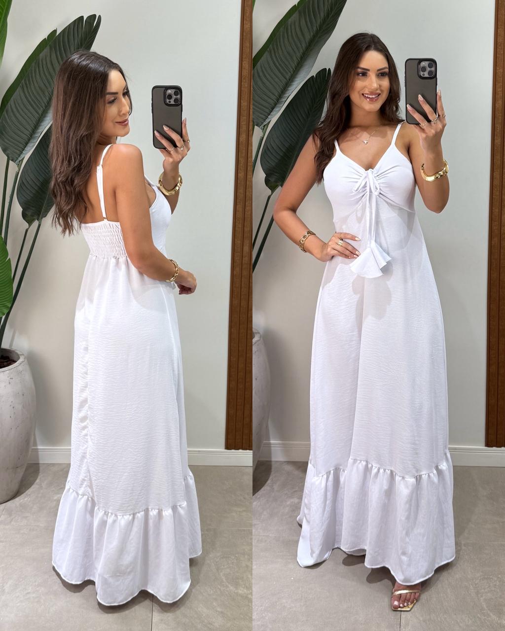 62 cm de busto, 68 cm de cintura, 82 cm de quadril e 131 cm de comprimento.