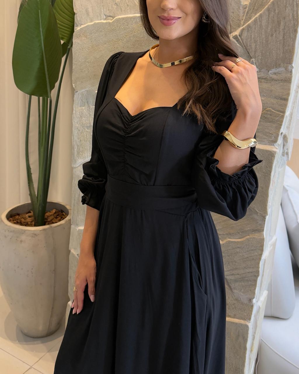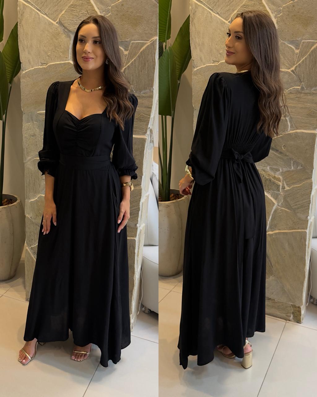 60 cm de busto, 62 cm de cintura, 80 cm de quadril e 135 cm de comprimento.