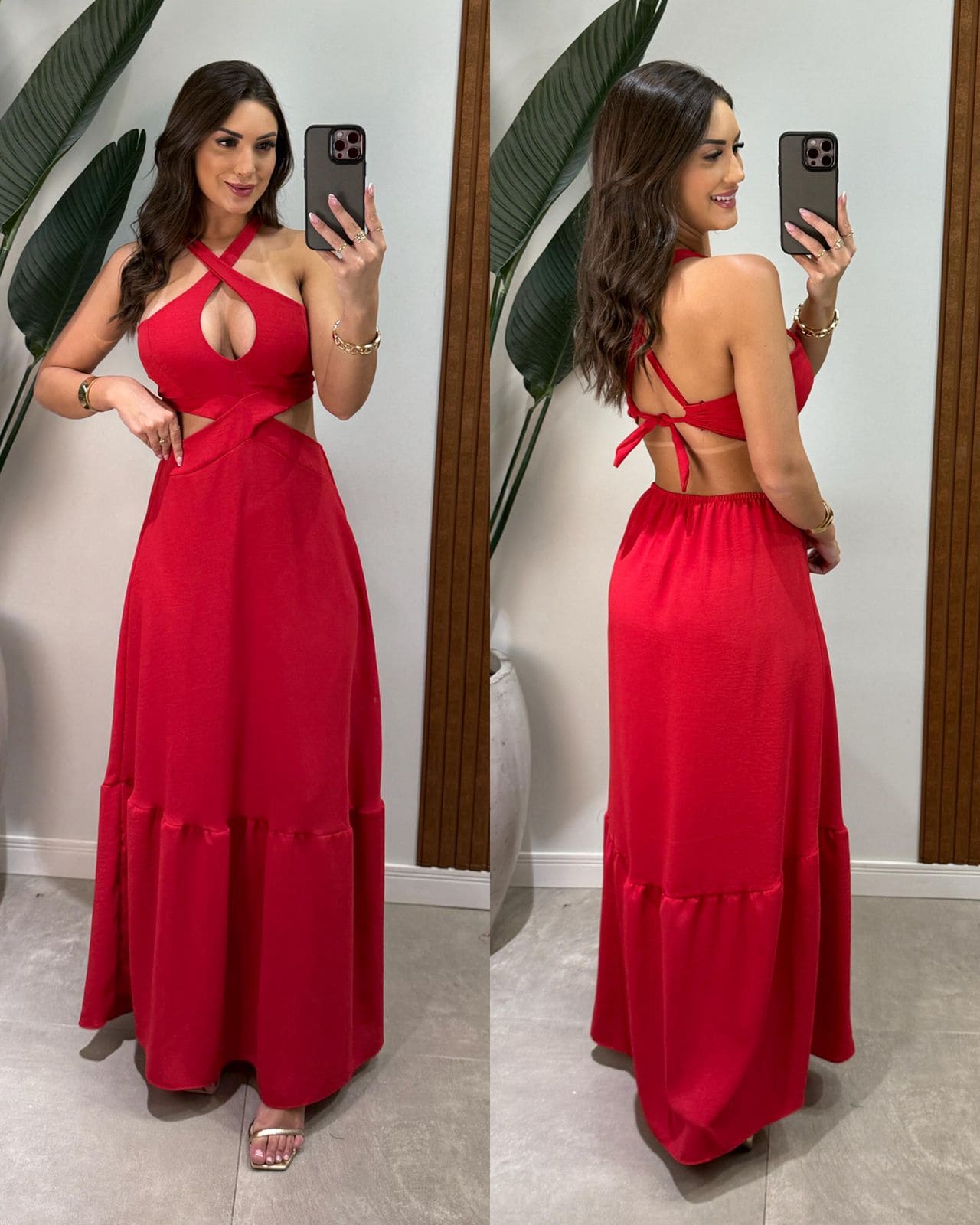 Alças cruzadas na frente, formando um detalhe diferenciado no busto