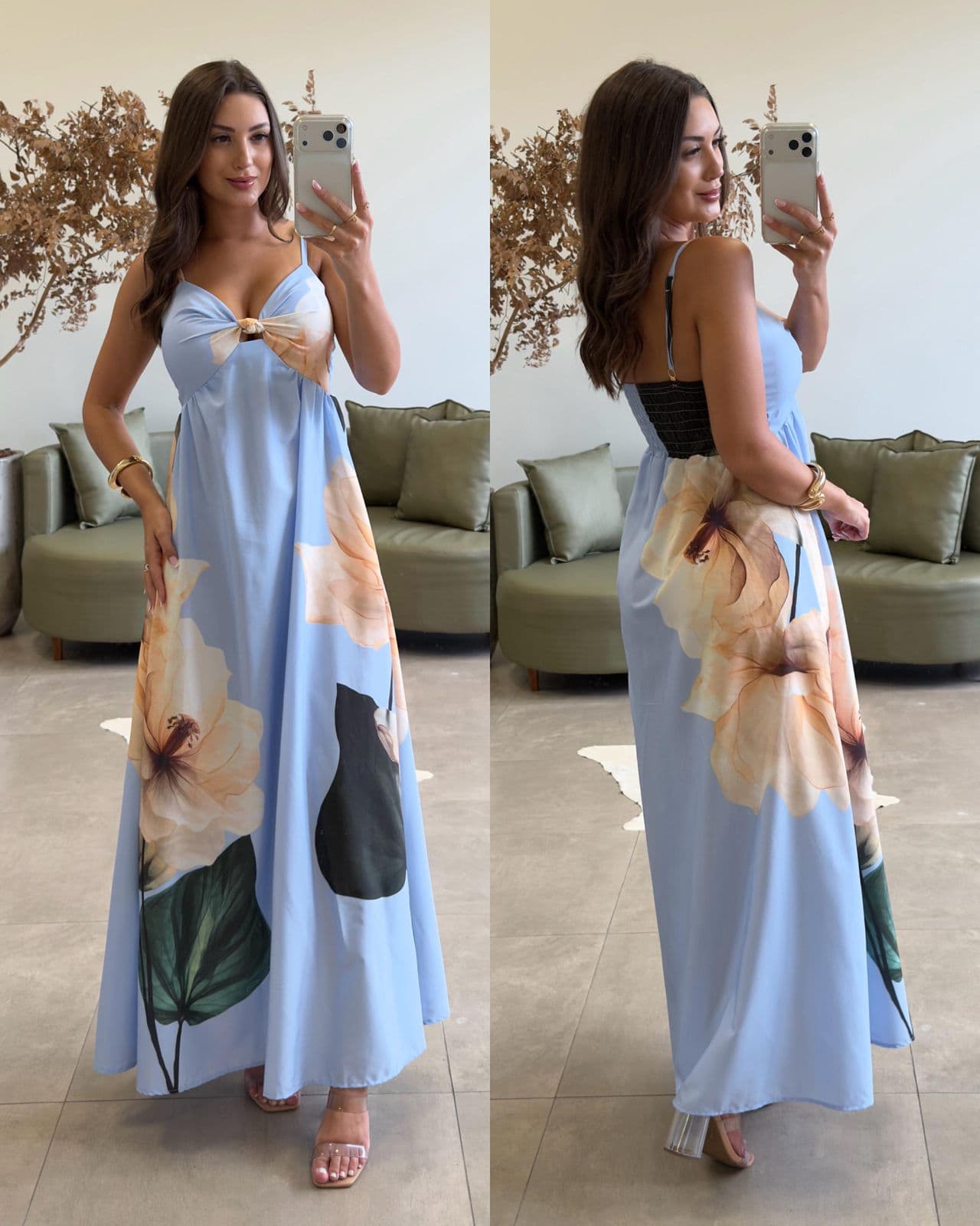 66 cm de busto, 78 cm de cintura, 98 cm de quadril e 122 cm de comprimento.