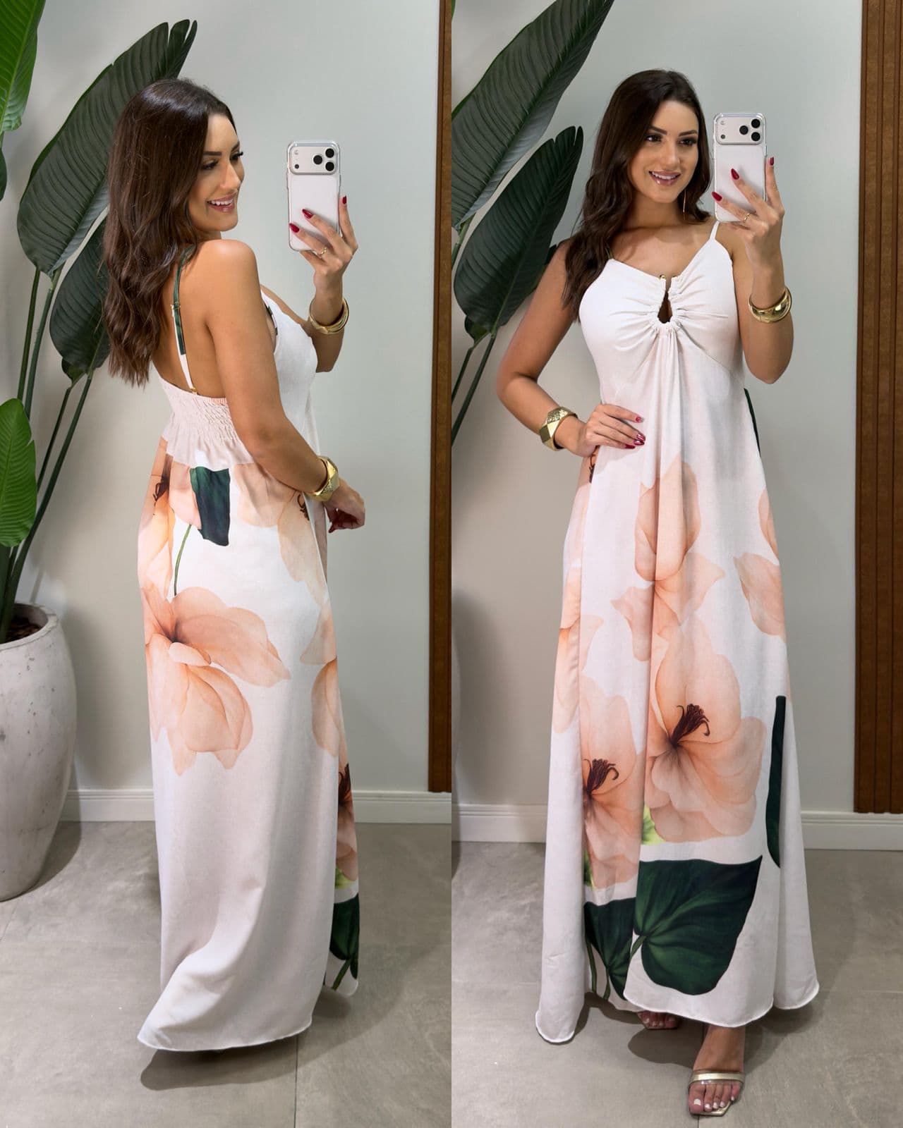 Vestido Longo Tropical Gabriela Creme
