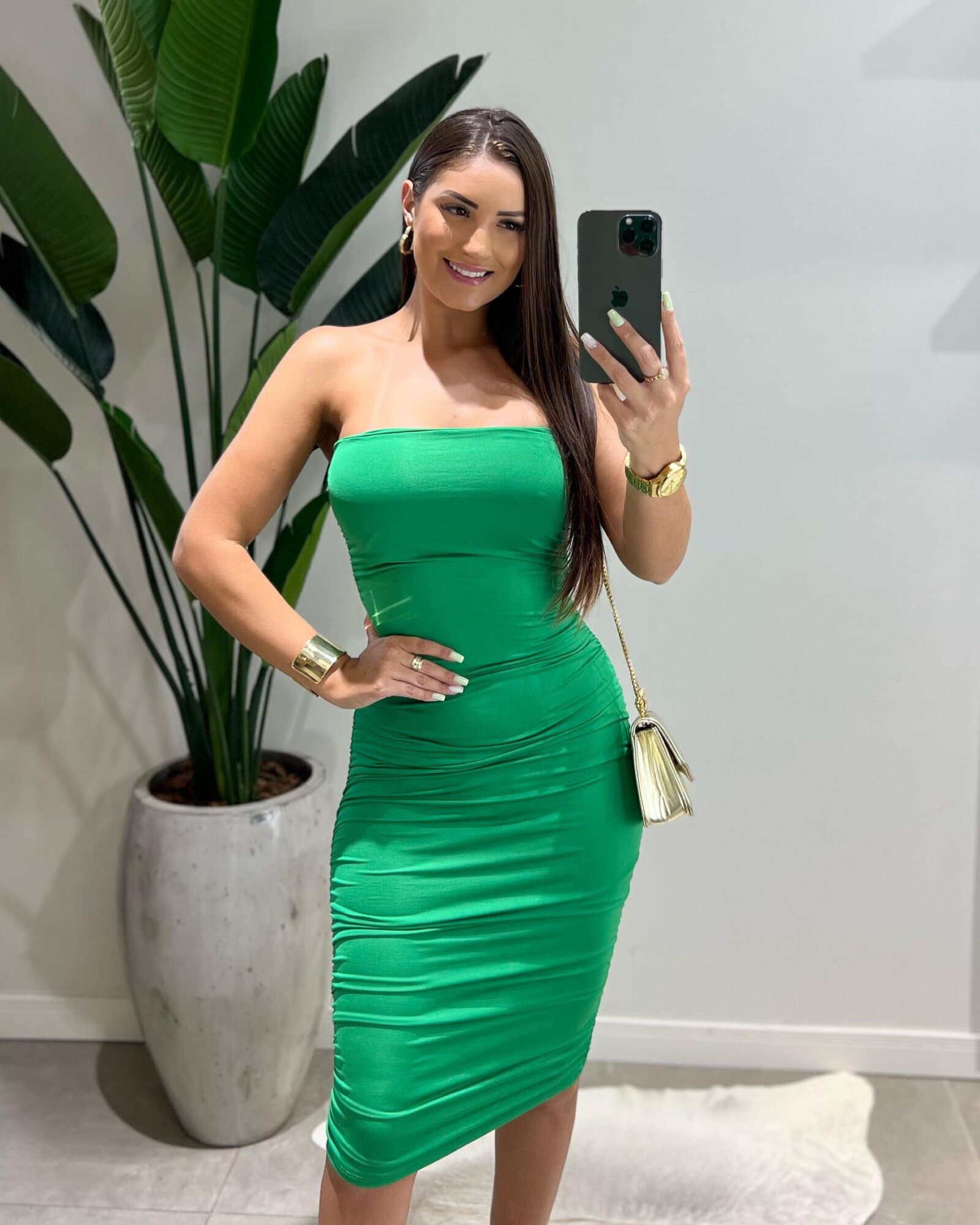 48 cm de busto, 60 cm de cintura, 64 cm de quadril e 80 cm de comprimento.