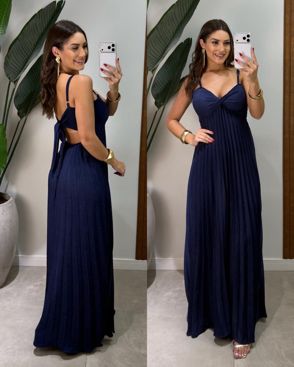 Vestido Plissado Azul Marinho