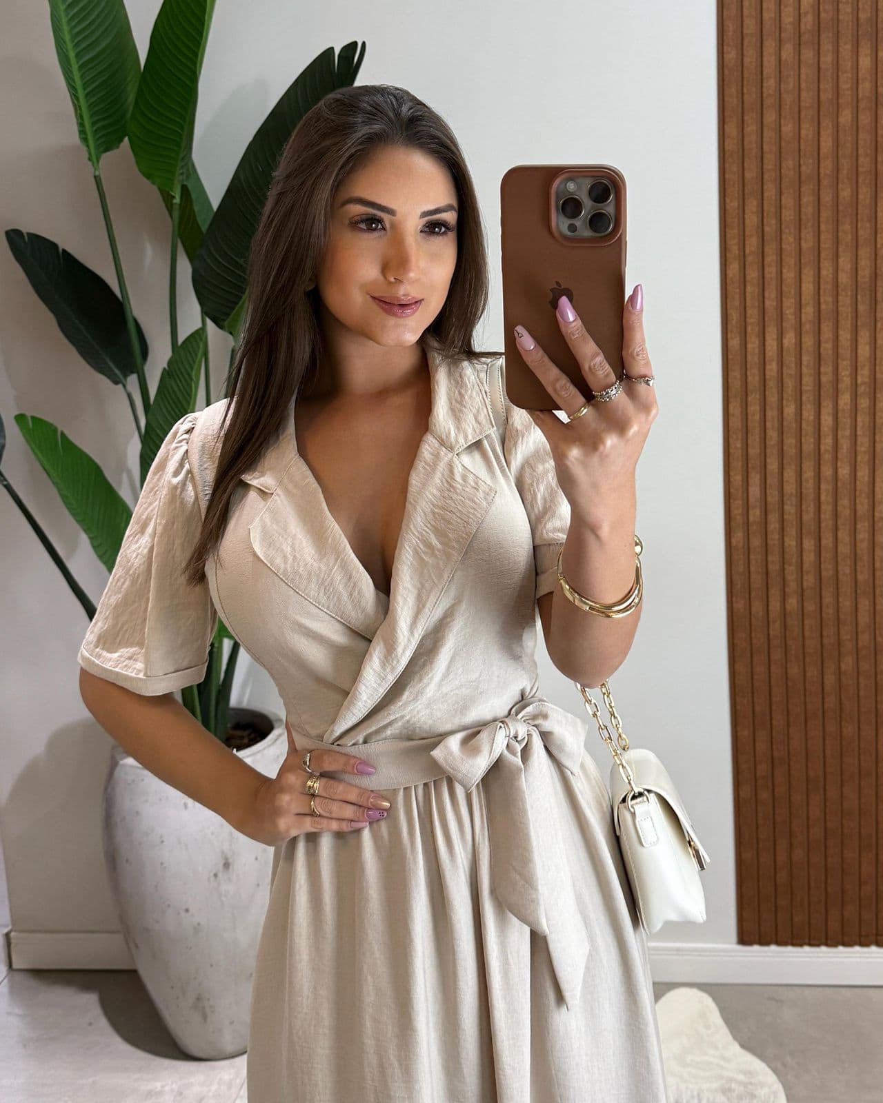 70 cm de busto, 68 cm de cintura, 88 cm de quadril, 137 cm de comprimento.